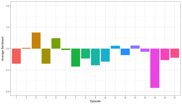 Jordan final suggestion is that producers and scriptwriters may consciously introduce these variations in emotional trajectories among consecutive episodes in order to get viewers hooked. If you want to redo the analysis or reuse some of the code used to create the visuals above, you can access Jordan’s R scripts here. I, for one, look forward to his analysis of Season 3!