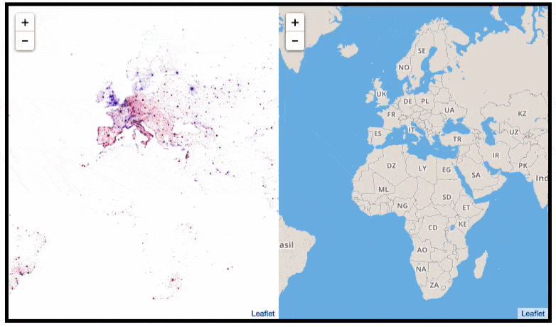 Are iPhones less common (among Shazam users) in Southern and Eastern Europe? In contrast, England and the big Japanese and Russian cities jump right out as iPhone hubs. In order to allow users to explore the data in more detail, Umar created an interactive tool comparing his maps to Google’s maps. A publicly available version you can access here (note that you can zoom in).