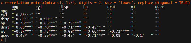 I remember that, when I first started using R, I found it quite difficult to generate these correlation matrices automatically.