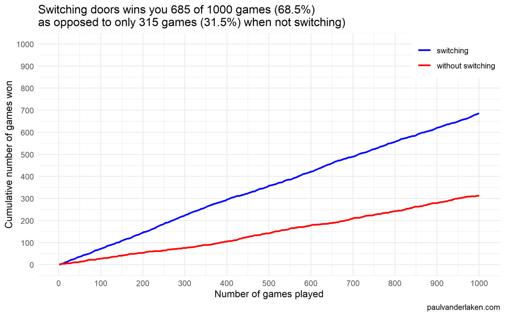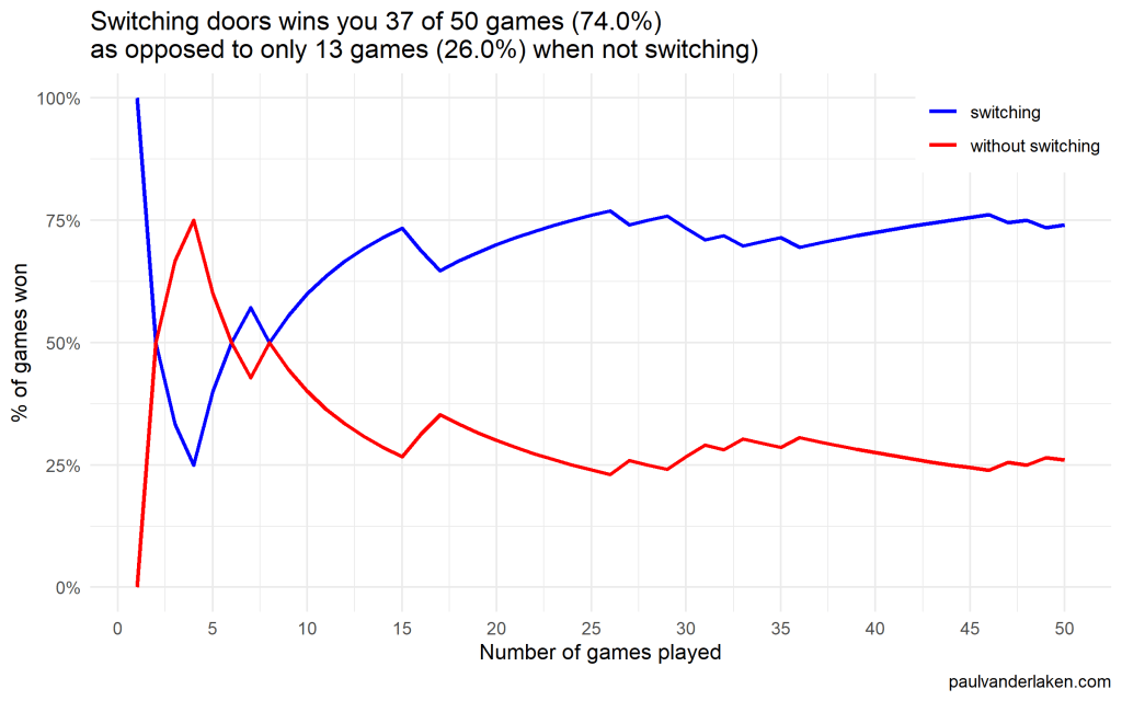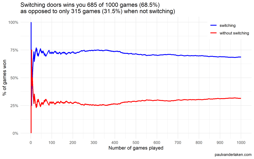 paste0('as opposed to only ', sum(results_without_switching), ' games (', format_percentage(mean(results_without_switching)), ') when not switching)'),
