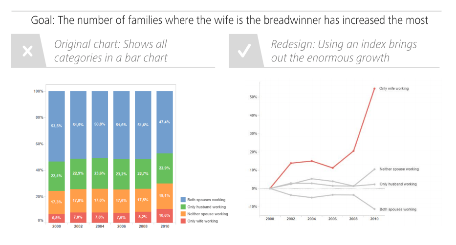 An alternative Kamil proposes is the well-known Waterfall chart. Kamil dedicated a whole blog post to creating good waterfalls.